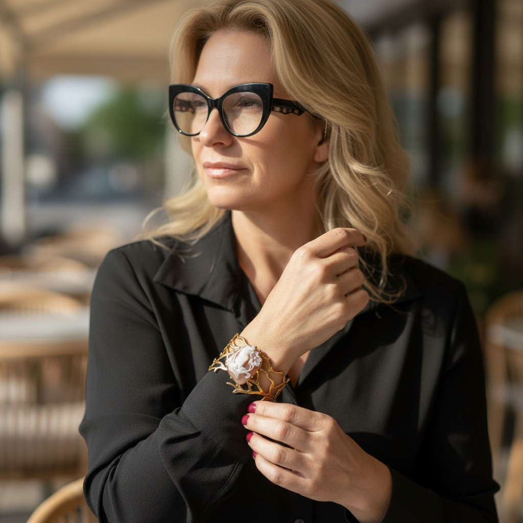 La creazione nasce da un'idea dei nostri artigiani nei laboratori di Torre del Greco, che tramandano l'arte dell'incisione del Cammeo seguendo tecniche centenarie, l'idea nasce e prende forma con la collaborazione della designer del brand, Lucia Vitiello.