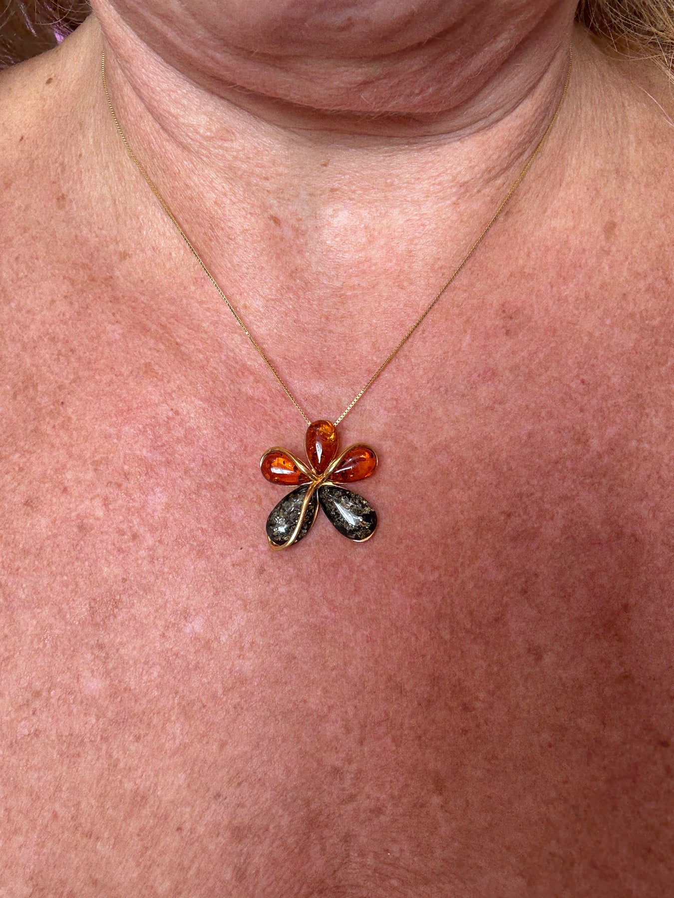 Collana ciondolo fiore di ambra multicolore del Mar Baltico è un gioiello raffinato, ideale per chi desidera esprimere bellezza e personalità attraverso i dettagli.