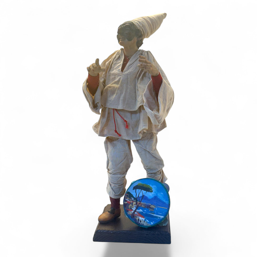 Pulcinella figurine on hand painted terracotta
