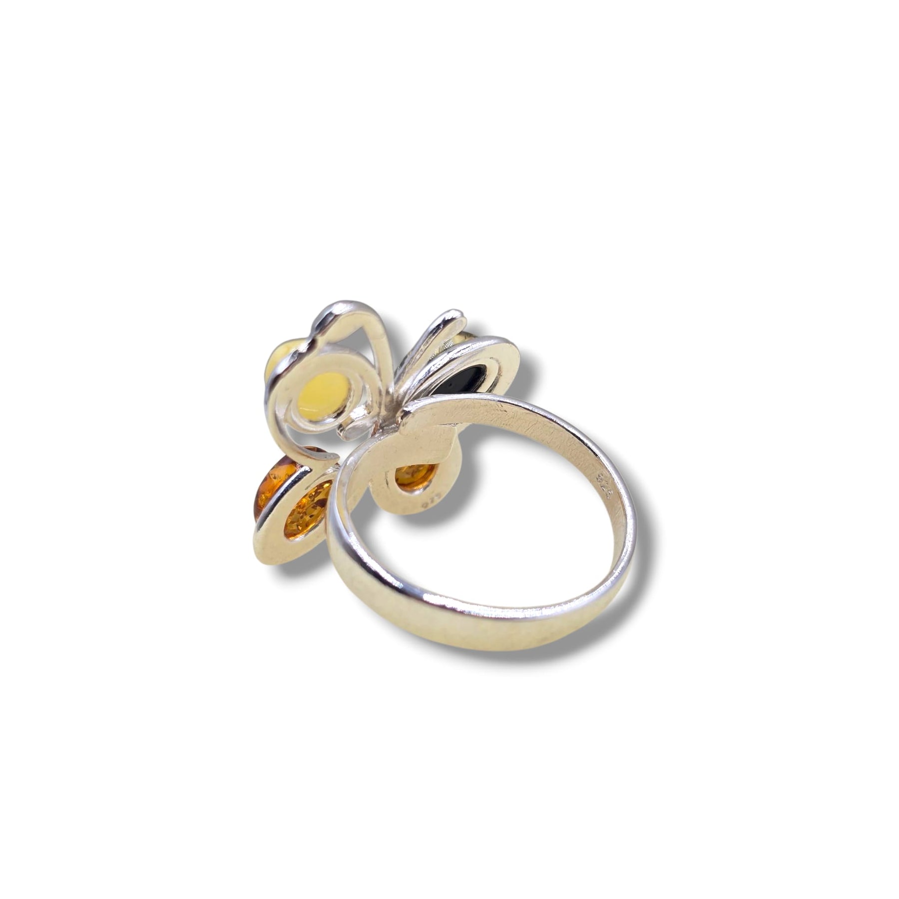 Anello “farfalla” in ambra del Mar Baltico con montatura in argento 925, è un gioiello raffinato, ideale per chi desidera esprimere bellezza e personalità attraverso i dettagli.