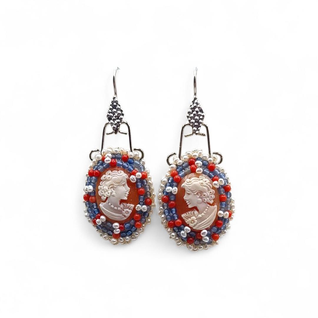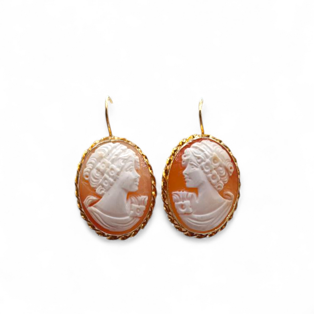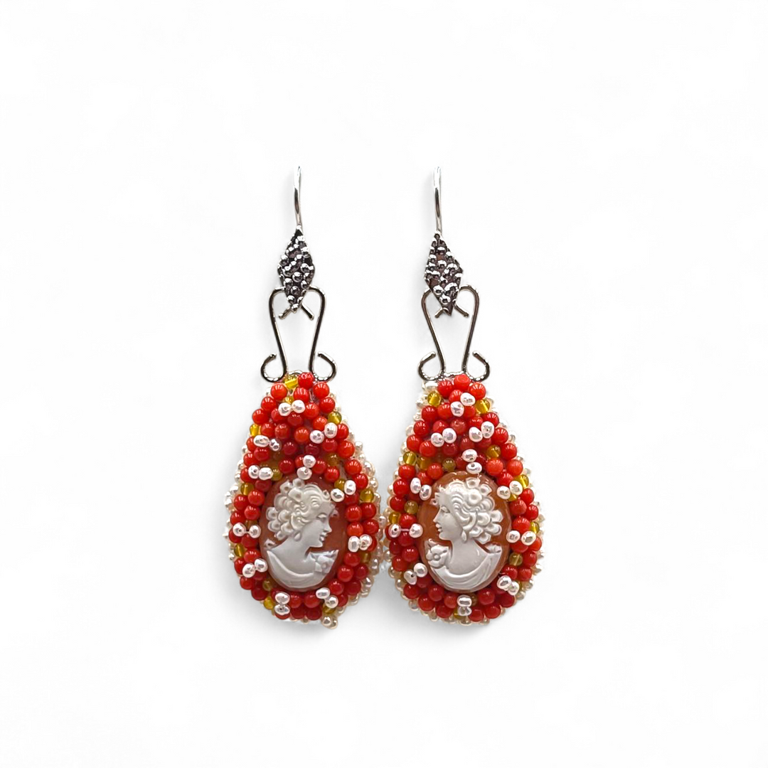 Discover the essence of sophistication with our exclusive collection of cameo earrings, crafted and engraved by the best artisans of Torre del Greco, embellished with coral and precious stones. The earrings can be a gift idea for a birthday, for a wife, for a girlfriend or simply for an anniversary gift.