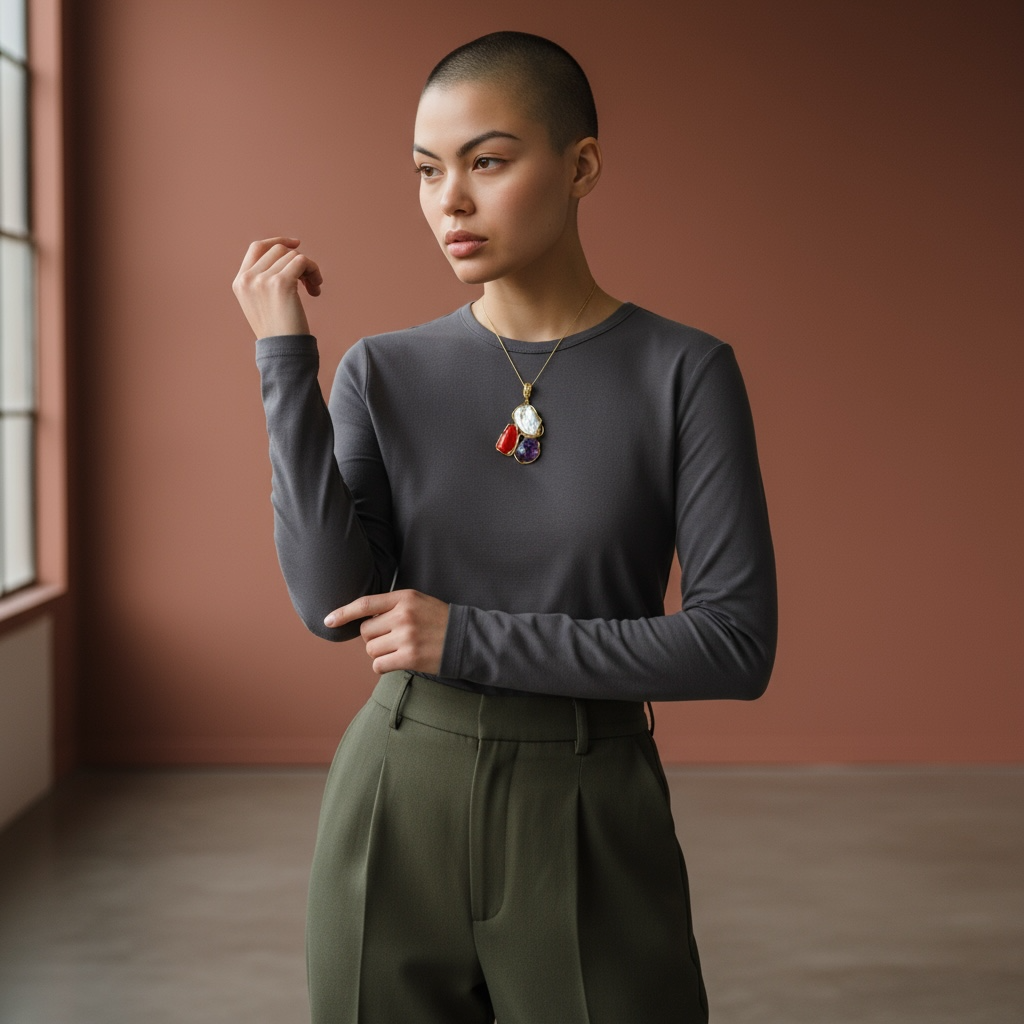 We offer a necklace with Trilogy pendants made of precious stones and gems. The various materials that make up the Trilogy are listed below, but the pendant can also be customized with your choice of stones. Wearing these pendants will certainly not go unnoticed.
