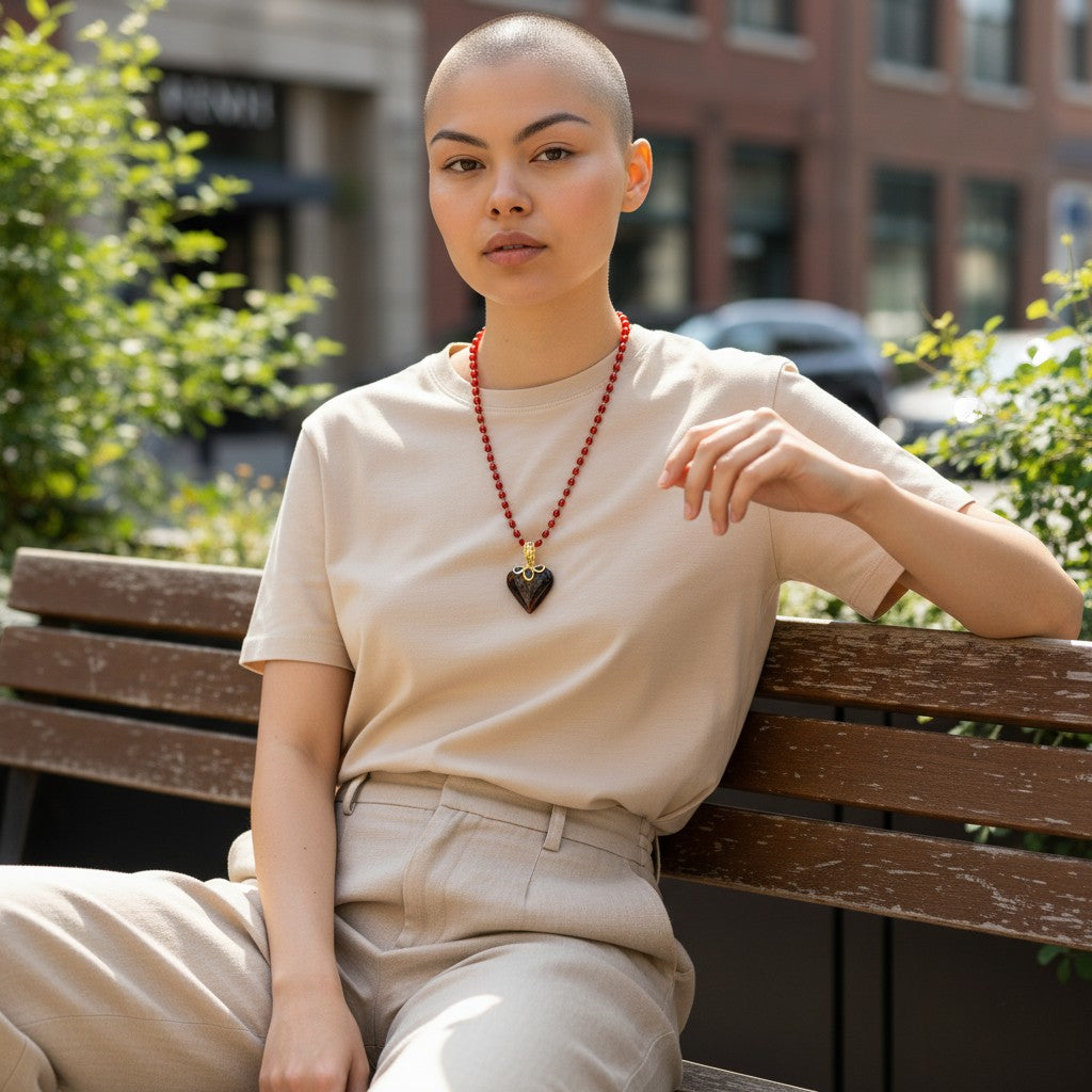 Proponiamo una splendida collana con ciondolo a forma di cuore, il tutto realizzato in Ambra Rossa, con una montatura in Argento Dorato. Stupiscila con un'idea regalo che la lascerà senza parole.