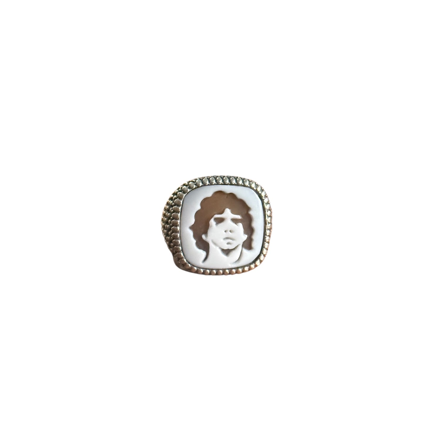 Maradona D10S ring in cameo engraved on sardonyx shell, by the master craftsmen of Torre del Greco, mounted on 925 silver.
